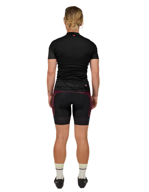 Women's cycling shorts with seamless leg cuffs, an ergonomic fit and supportive material.