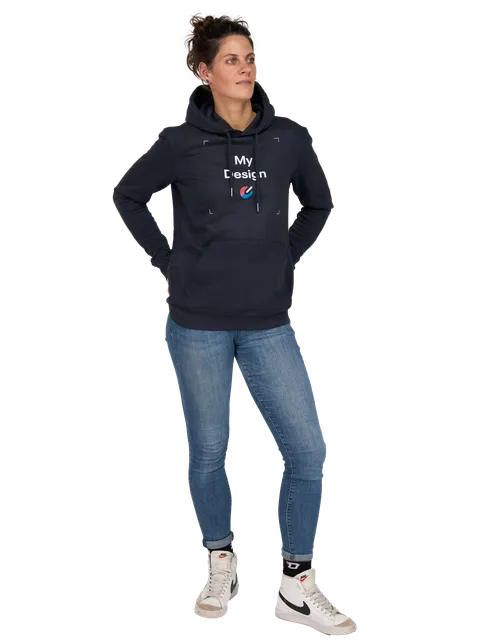 The hoodie can be printed on the chest and back.