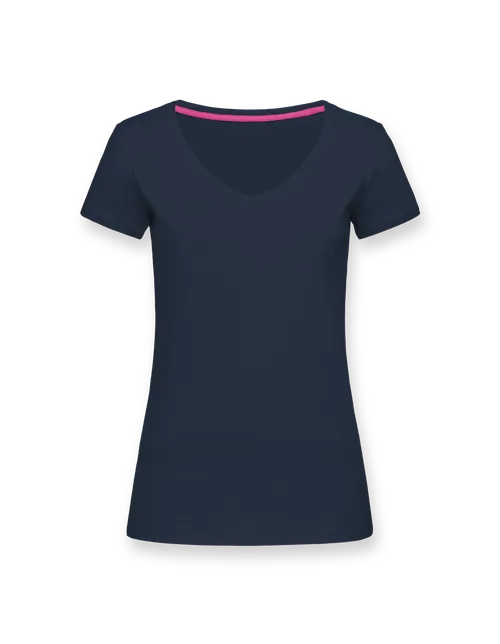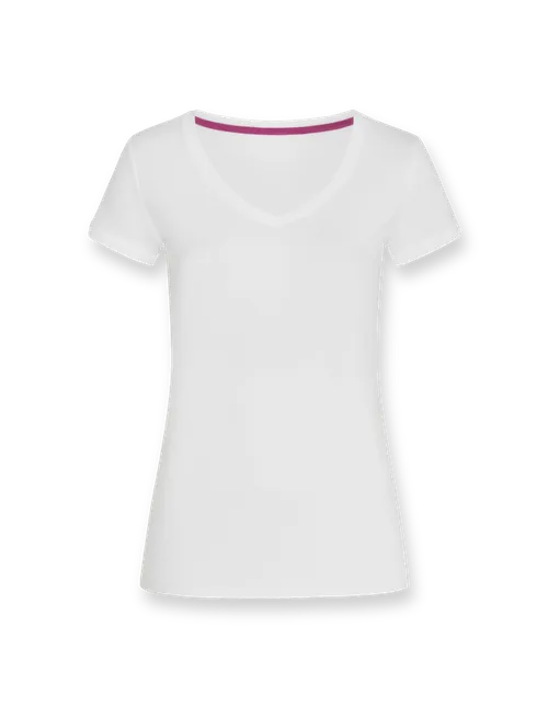 The women’s T-shirt features a wide V-Neck and slim fit. The athletic yet relaxed cut offers a sporty look.